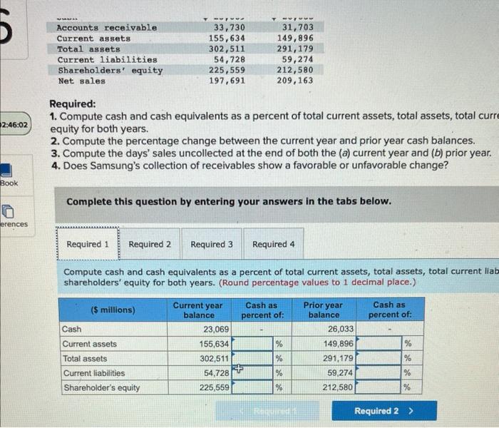 Solved Required 1. Compute cash and cash equivalents as a
